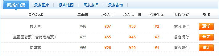 选择所需的门票类型。了解景点信息、参观景点图片、交通地图等等相关信息,点击预订按钮。